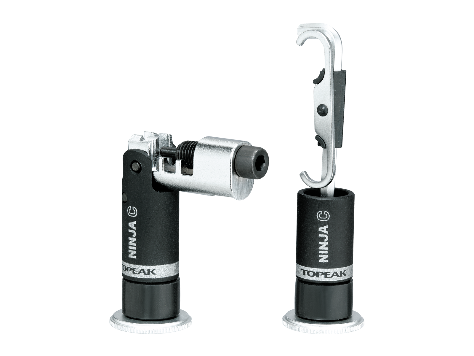 Lo strumento per catena Ninja C si ripone all'interno del manubrio per mantenere le linee ordinate della tua bici, ma è facilmente accessibile quando ne hai bisogno. Questo attrezzo per catena compatibile a 12 velocità include uno scomparto per il perno della catena, un gancio per catena e una chiave a brugola da 4 mm per un facile utilizzo.